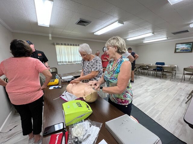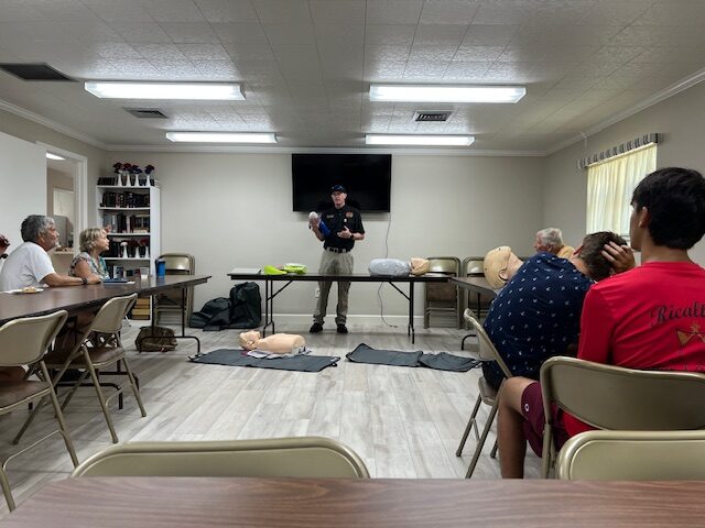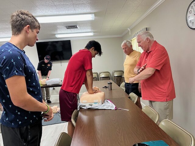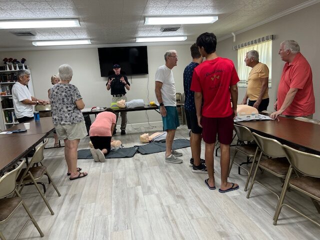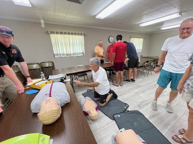 CPR refresher course provided by Englewood Fire Chief Kyle Brooks to several parishioners