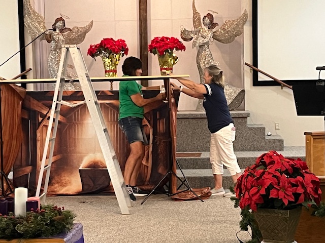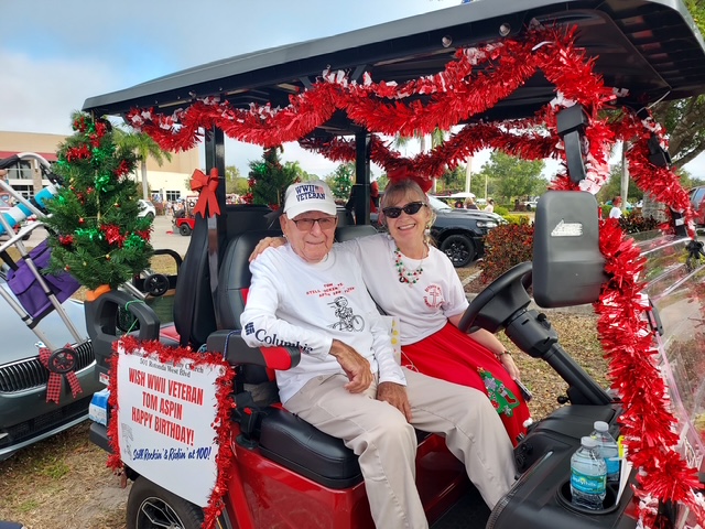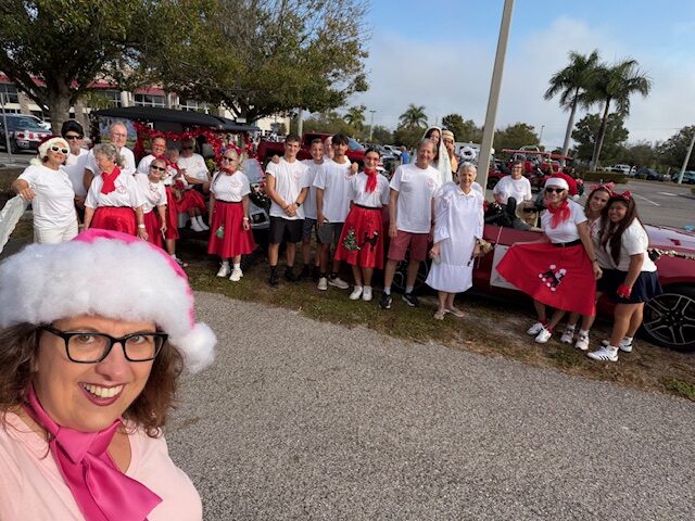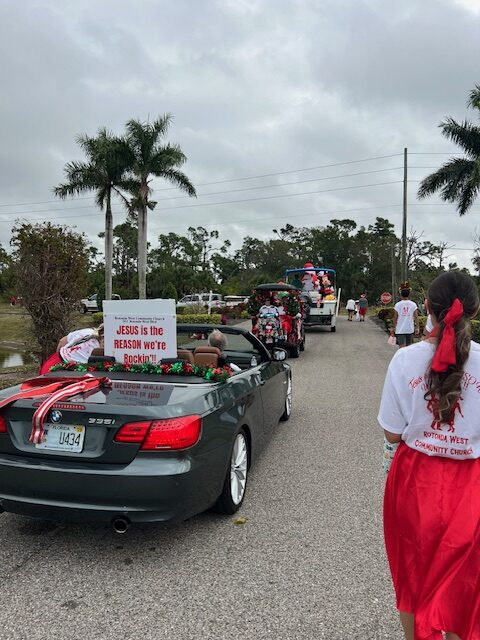 2025 – preparation for 2025 Christmas Musical “Jesus-The Baby Who Changed the World”; Rotonda West Parade-preparing our ‘float’ Jesus is the REASON we’re Rockin’! Church member Tom Aspin, celebrating his 100th birthday, led our float in the parade!