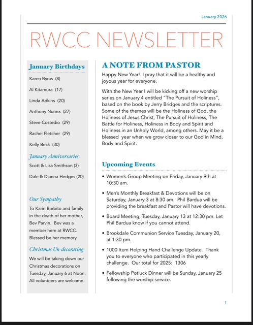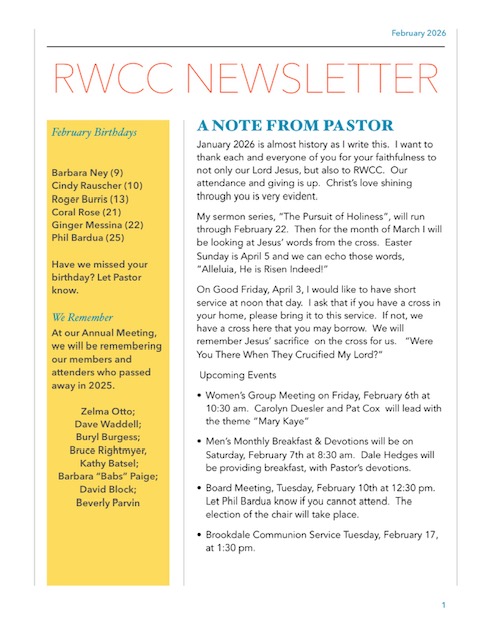 MEMBERSHIP: Would you like to become a member of RWCC? See Pastor Michael for details.