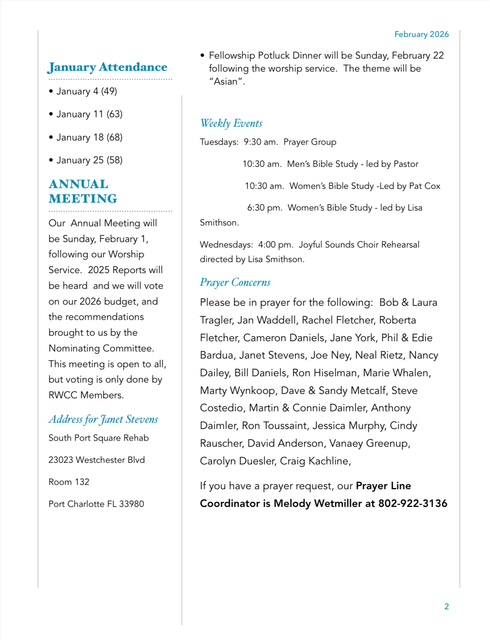 Please check out our new website at rotondawestcommunitychurch.com. We thank Barbara, Harold and David Percey for their work on this.
